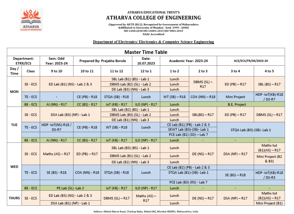 Yearwise Department Timetable